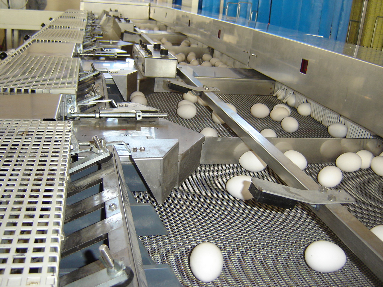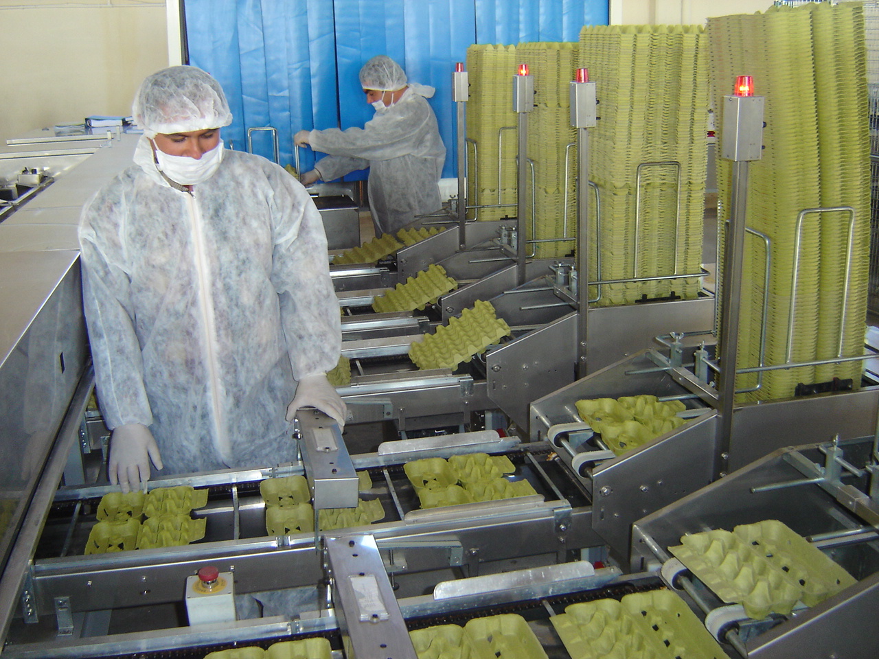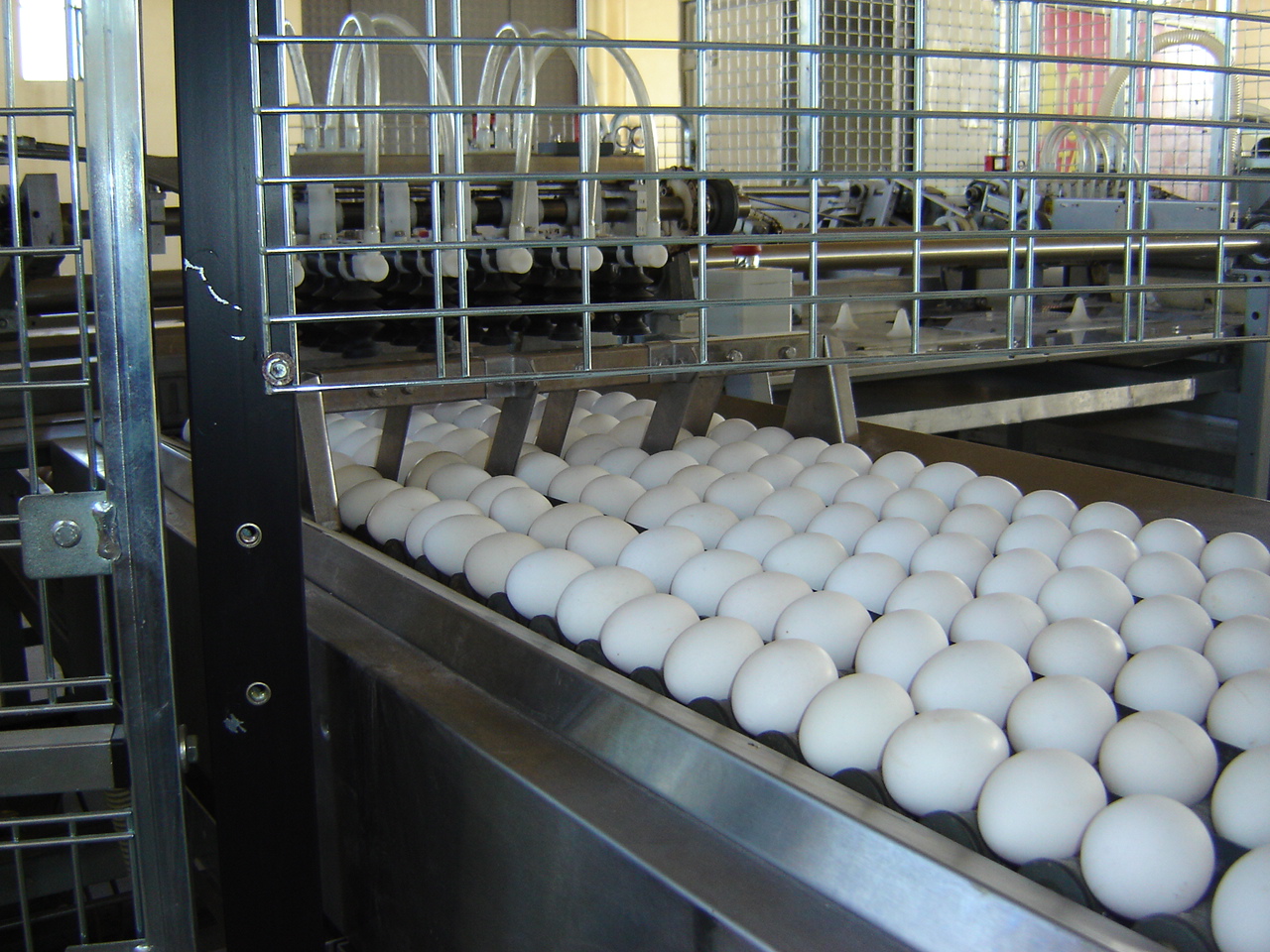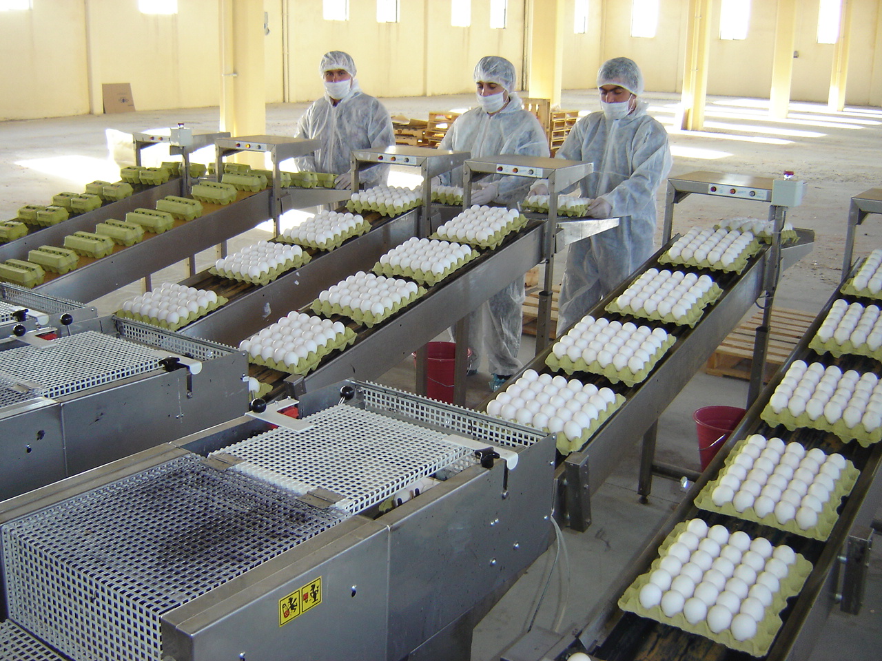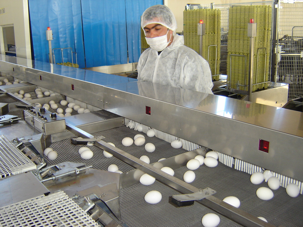 El değmeden toplanan yumurtalar, taşıyıcı bantlarla tam otomatik tasnif makinemize gitmektedir.