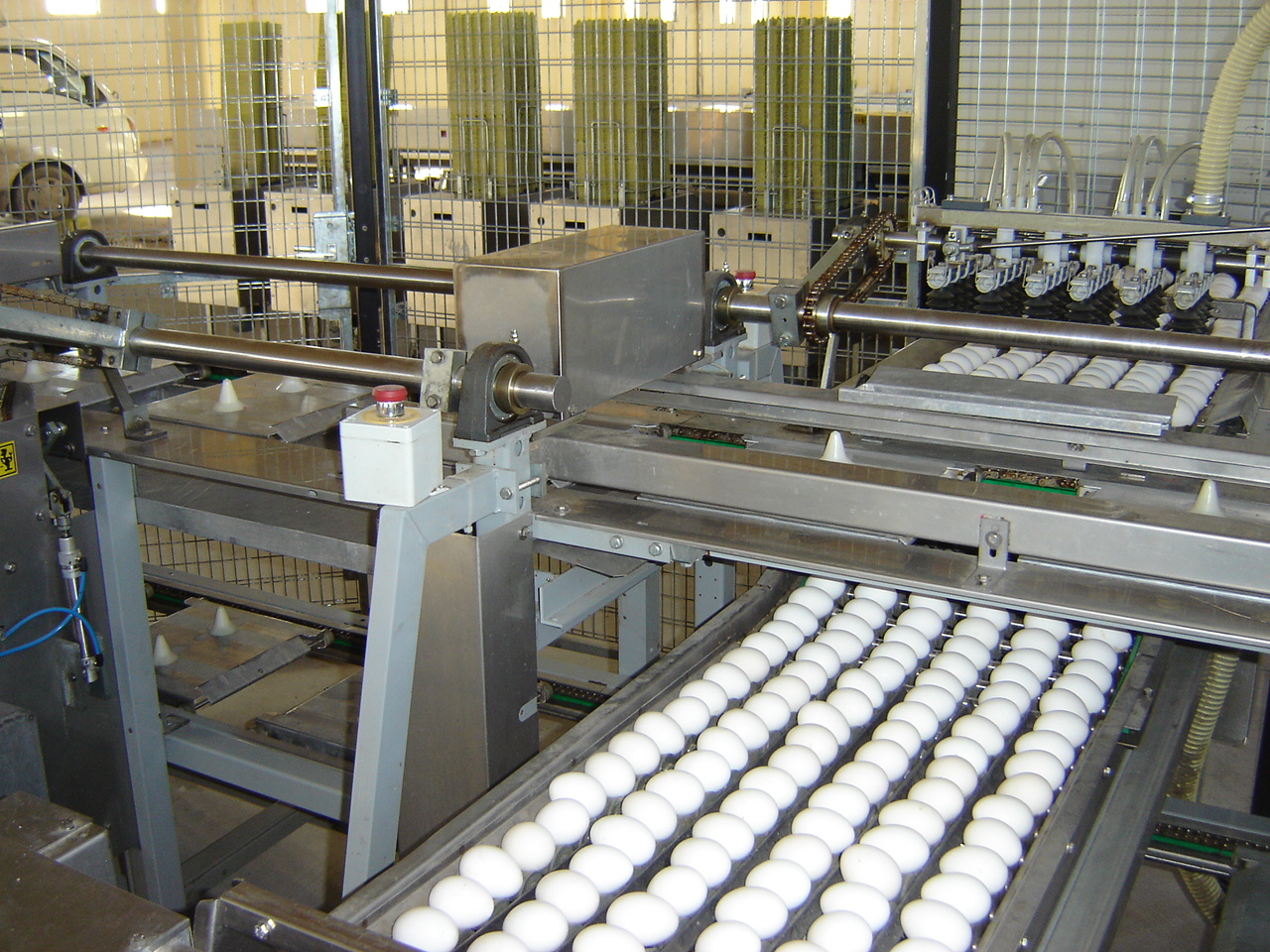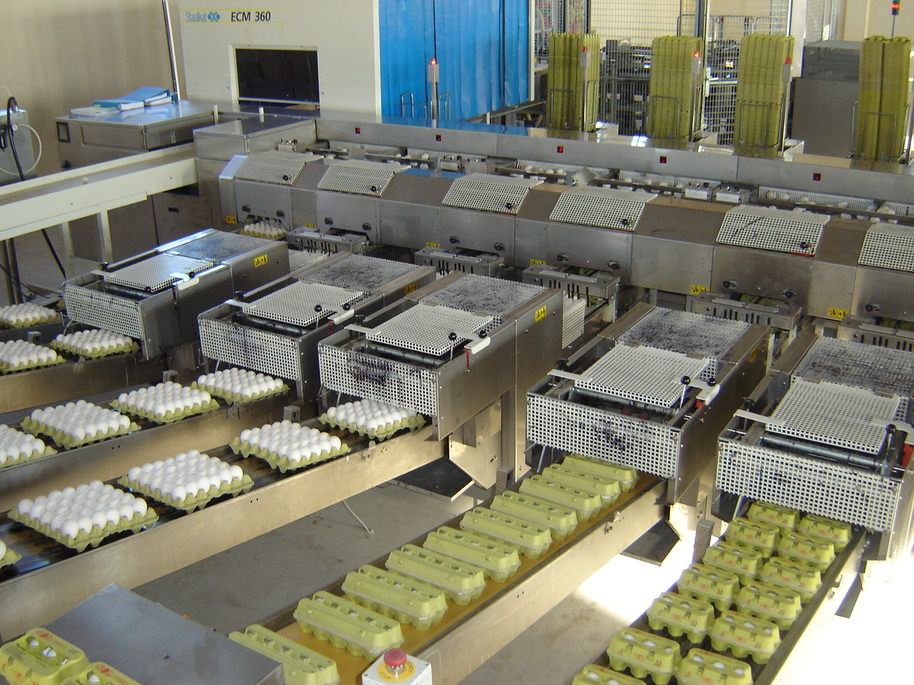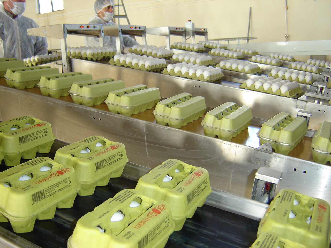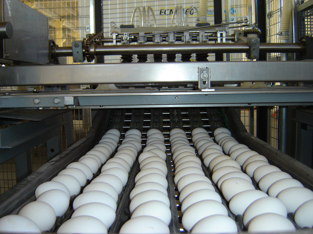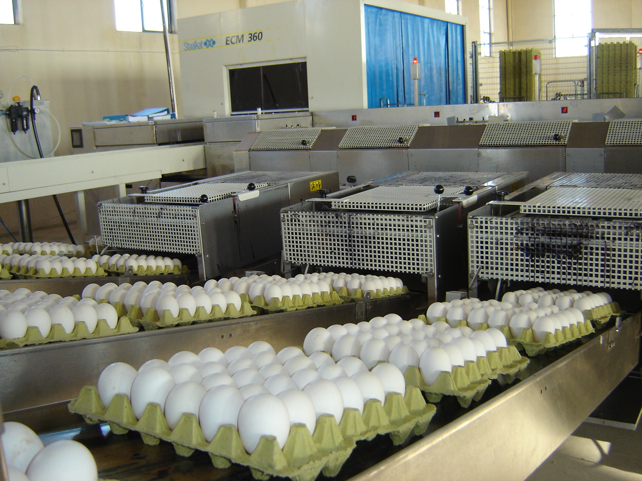 El değmeden toplanan yumurtalar, taşıyıcı bantlarla tam otomatik tasnif makinemize gitmektedir.