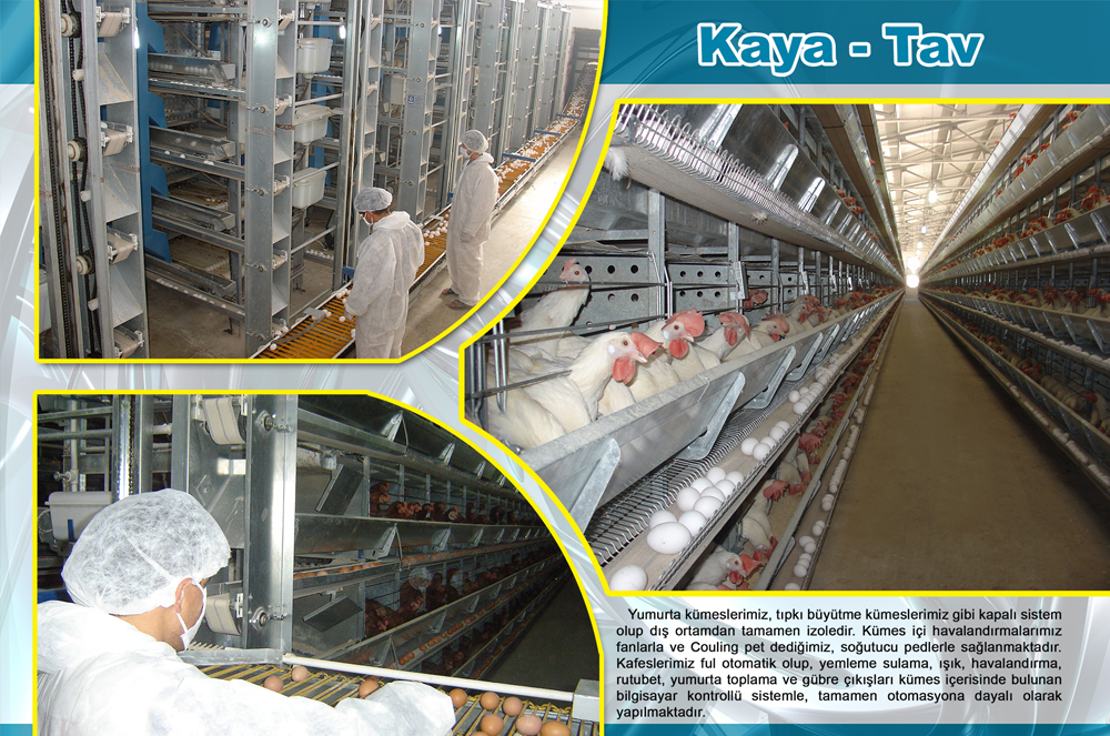 Yumurta kümeslerimiz, tıpkı büyütme kümeslerimiz gibi kapalı sistem olup dış ortamdan tamamen izoledir. Kümes içi havalandırmalarımız fanlarla ve Couling pet dediğimiz, soğutucu pedlerle sağlanmaktadır. Kafeslerimiz ful otomatik olup, yemleme sulama, ışık, havalandırma, rutubet, yumurta toplama ve gübre çıkışları kümes içerisinde bulunan bilgisayar kontrollü sistemle, tamamen otomasyona dayalı olarak yapılmaktadır.